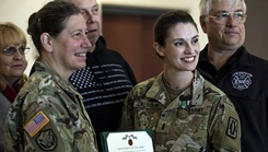 Army Maj. Katherine Sego, an emergency room nurse with the 936th Forward Resuscitative Surgical Team (FRST), bowed her head as the words of the invocation fill the room.